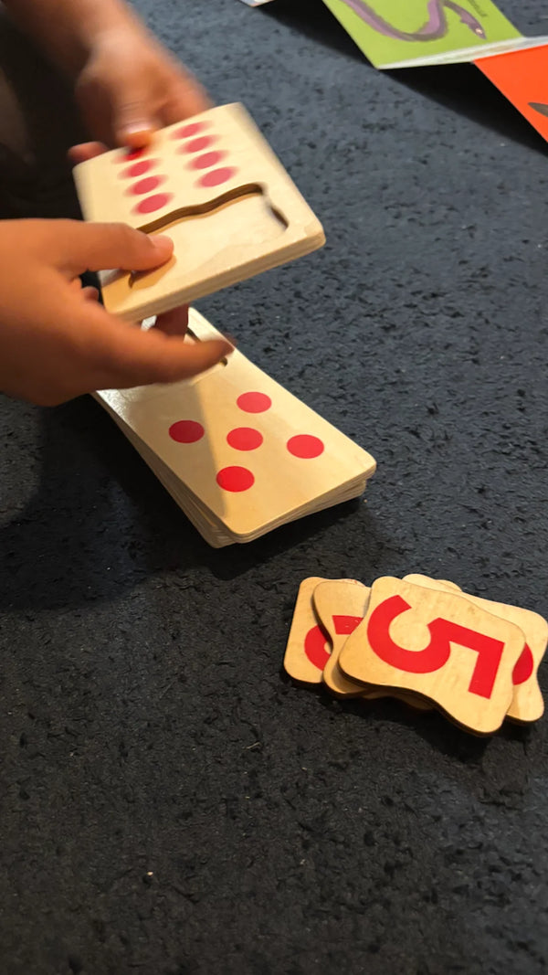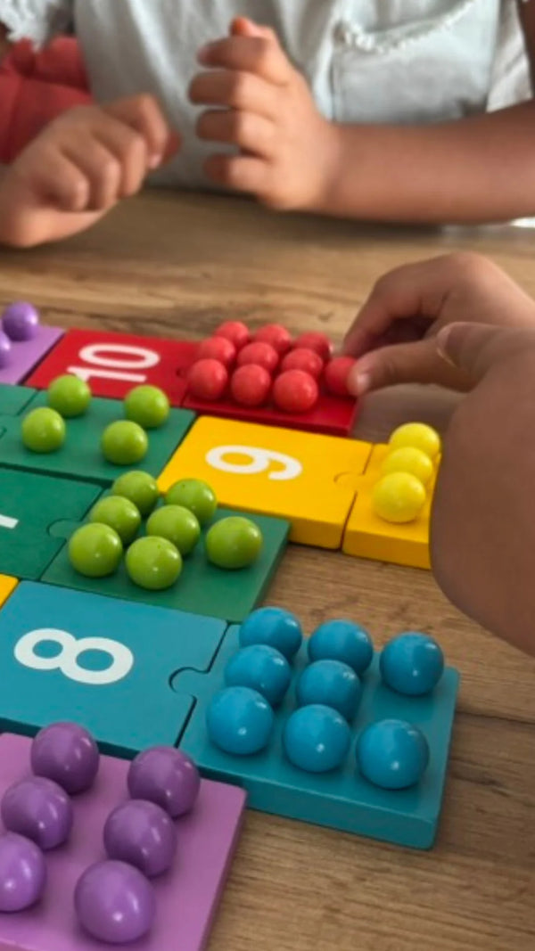 Le jeu cible la correspondance quantité ↔ chiffre, la sériation et le langage du nombre grâce à des manipulations guidées.
